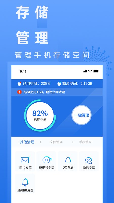 1. 在这里,用户能够清晰看到自己手机的已用空间和可用空间大小,快速了解。