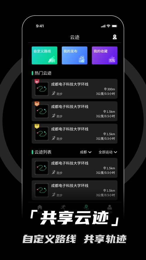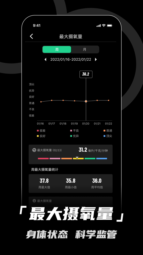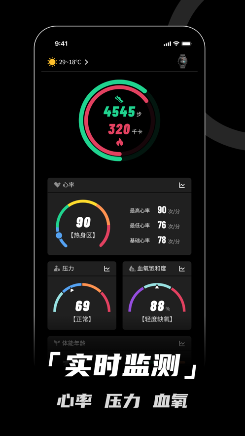 2. 支持多种运动模式以及运动参数的查看,针对不同运动模式进行相应优化,呈现的运动数据更加人性化。其中运动模式主要包括:飞行、跑步、骑行、登山、室内跑步、健走等。运动参数主要包括:里程、卡路里、运动时长、配速、速度、心率、海拔、踏频、步频、温度、心率区间、坡度变化、各圈配速等。