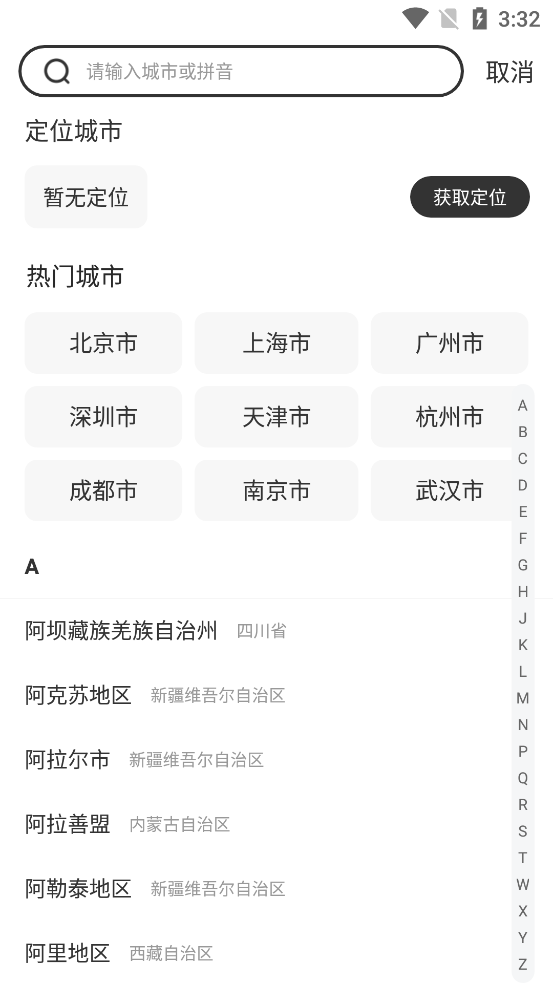 支持查看当前所在地以及其他指定地点的实时气温、空气湿度、风向风力等全方位气象数据。