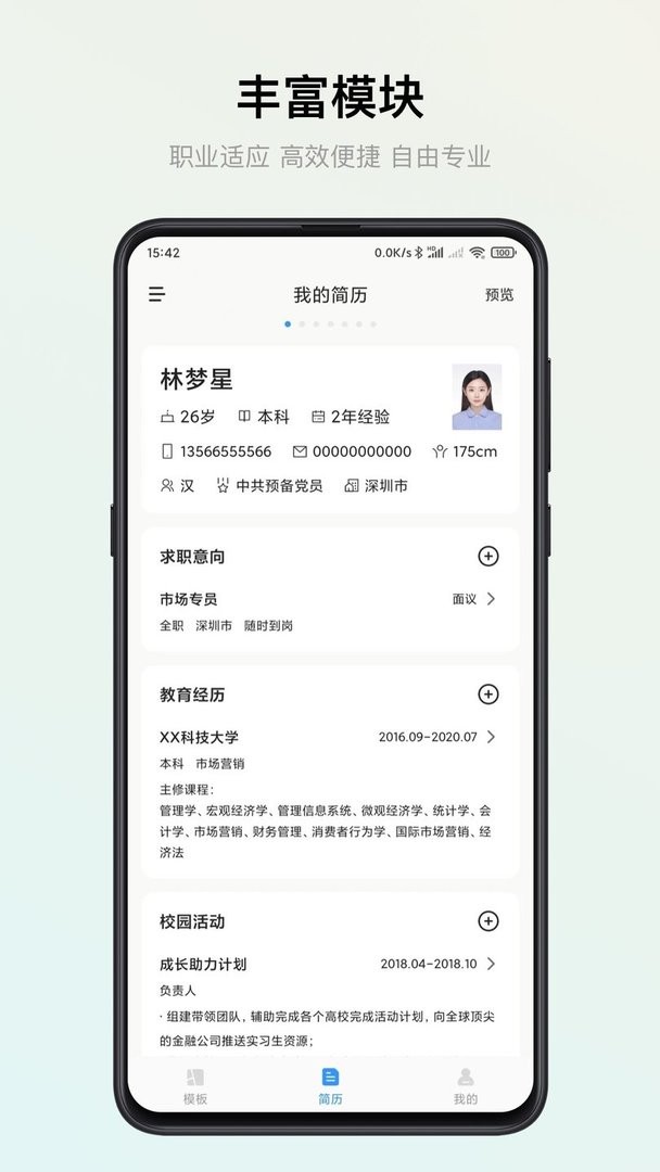 一键自动排版生成精美实用简历模板,完美的呈现在hr眼前。