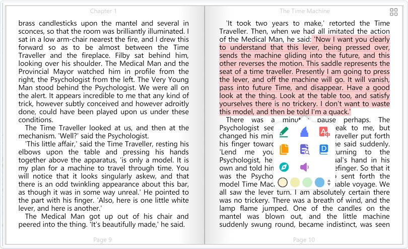 简单易用的 EPUB 笔记系统,让你在学习时效率倍增,充分体验电子化学习的乐趣。当然,您还可以导出笔记,存在任何地方,方便日后查阅。