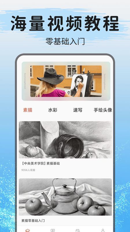 提供涵盖素描、水彩、速写等从入门到高阶的系统化视频教程,内容干货十足。