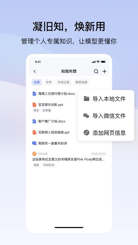 在个知产品里,为用户配备了能够自主上传或关联个人文件的个人知识库功能,以此来构建动态化的用户画像