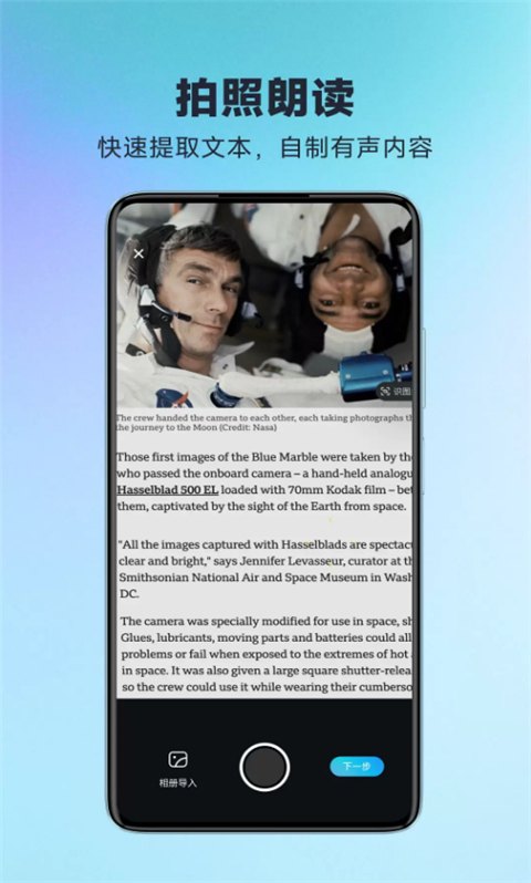 1. 用户登录app后,即可选择相关文章进行跟读。