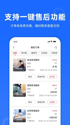 也能在线对各种专业顾问服务进行办理,时刻对用户生活法律疑问进行解答。