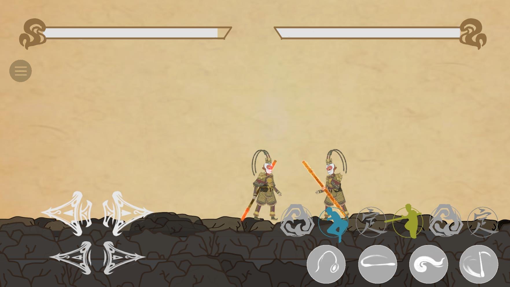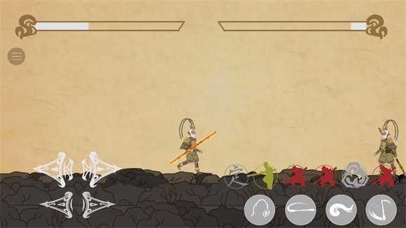 4. 点击上方的圆形按钮可以施展三种不同的棍法、金刚不坏和定身术。消除的圆形按钮越多,招式的威力越大。