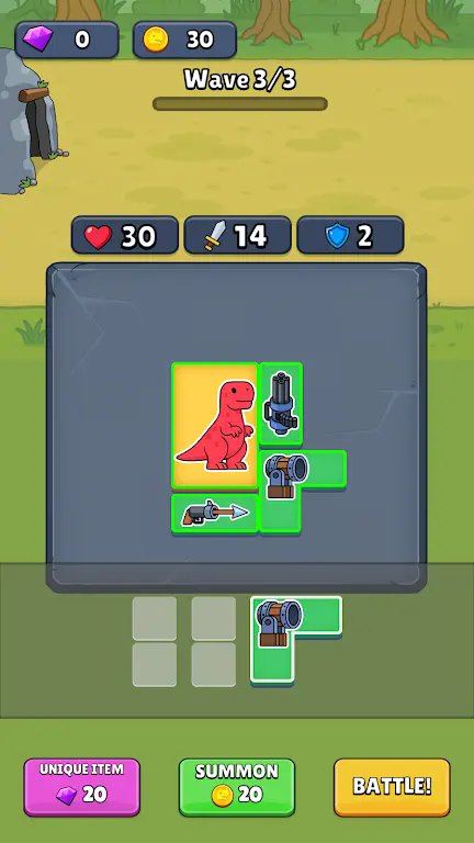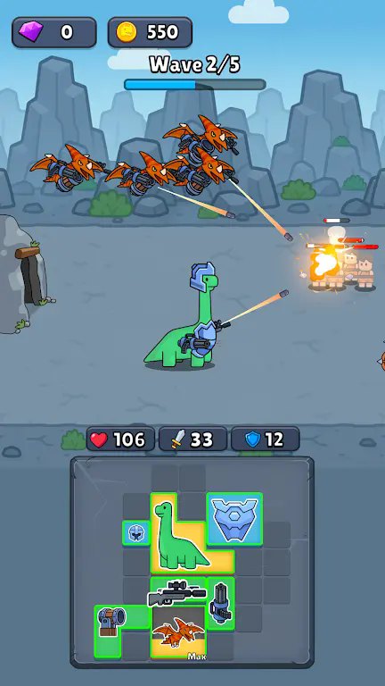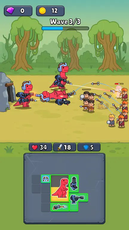2. 轻松放置闯关,只需要为你的恐龙配置好武器后,就可以体验自动战斗的乐趣