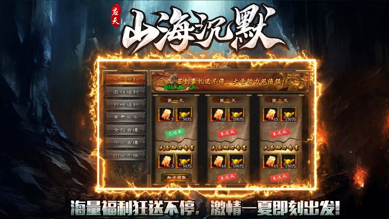 1. 刚上线就可领取新人礼包,进入本服后领取签到奖励、年卡奖励,免费获得大量元宝、红包、灵符、爆率,助力前期快速起步。