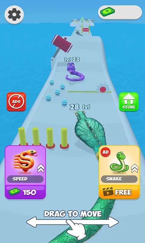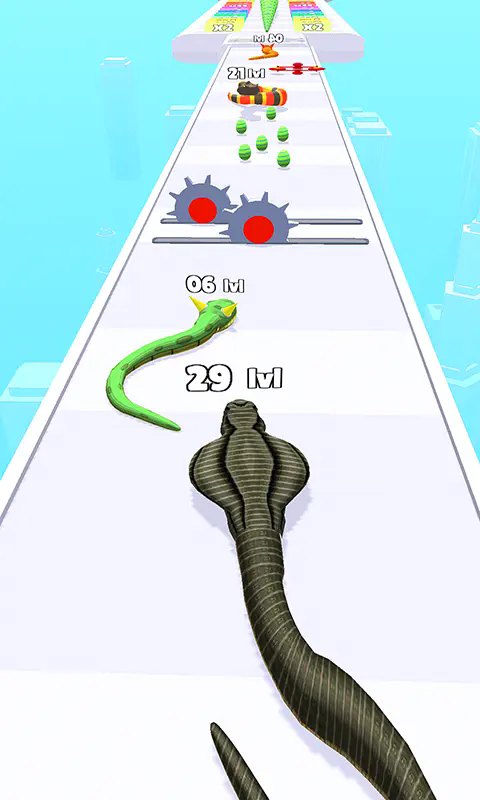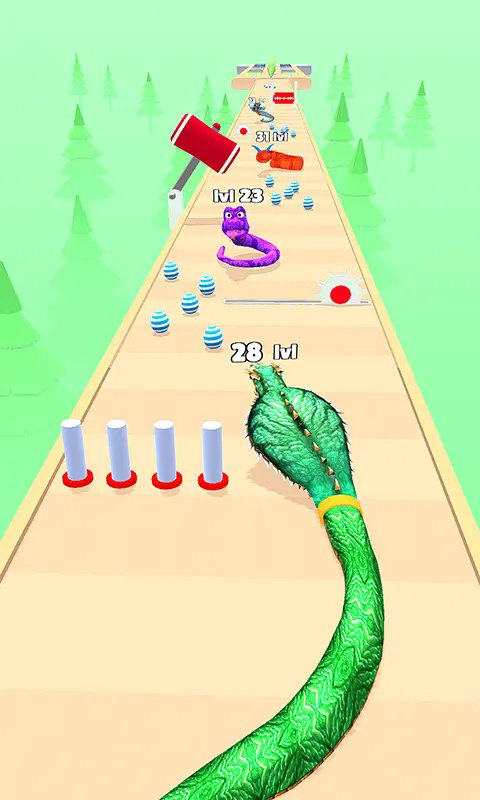 贪吃蛇进化跑酷3D是一款卡通风格的跑酷闯关游戏,将经典的贪吃蛇玩法与跑酷元素相结合,融入了精美的3d卡通画风,为你带来全新的趣味体验。玩家需要引导你的小蛇灵活移动,穿越各种危险的陷阱机关,并收集道具不断成长,最终进化为超大的贪吃蛇。