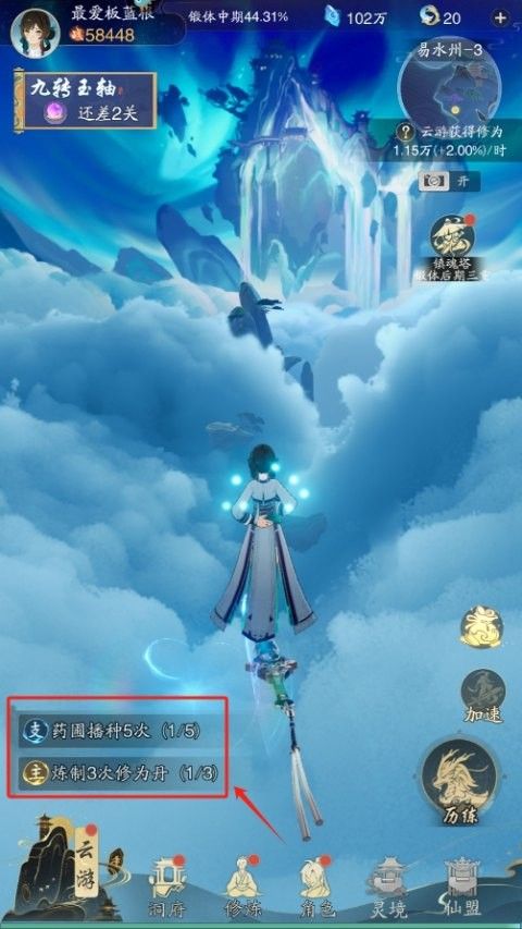 2. 完成主线任务,获得道具、提升修为