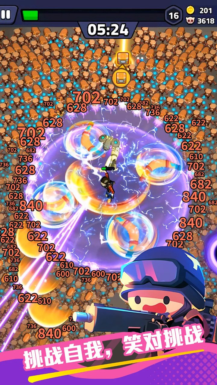 非常有趣的割草冒险游戏,玩家可以扮演一名幸存者,在广阔的地图中自由探索,不断击败怪物来升级,解锁更多的武器和技能,释放满屏子弹,欢乐解压