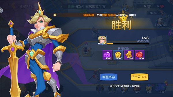 6. 通关后会获得丰富奖励,点击英雄界面可以用获得的奖励来强化你的英雄。