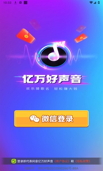 亿万好声音安卓版是一款休闲趣味的猜歌小游戏,有着许多类型的歌曲等待大家来发现,你需要根据各种旋律和片段,来找出最终的正确选项,每次成功通关都能获得红包奖励,玩法轻松简单,感兴趣的小伙伴不妨下载试一试吧。