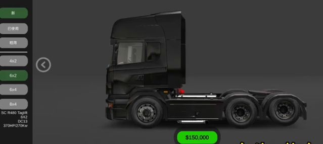 4. 展厅中有许多规格的车,用户可选择4×2. 6×2. 6×4. 以及8×4的,点击绿色按钮即可购买。