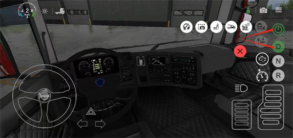 2. 坐到驾驶位后,先后点击最右边【电源图标】和【字母D图标】。
