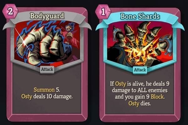 碎骨:如果奥斯提存活,则其对所有敌人造成9点伤害且你获得9点格挡。奥斯提死亡。