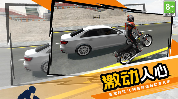 大家都能享受到摩托车狂飙的快感,在整座城市中尽情的奔驰,与障碍物擦出火花,在车流中闪转腾挪,享受驾驶过程的纯粹快感,让人欲罢不能
