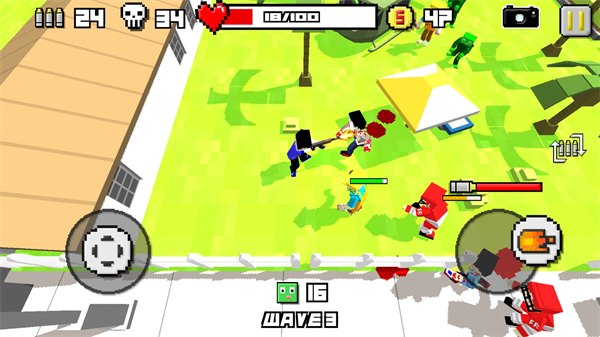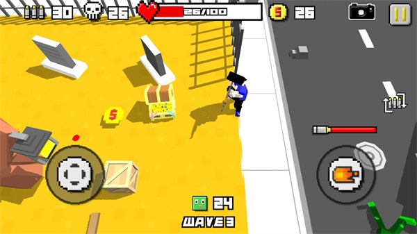 3. 选择好模式后,正式开始游戏。左边的按钮用于控制角色移动,右边的按钮用于开火。