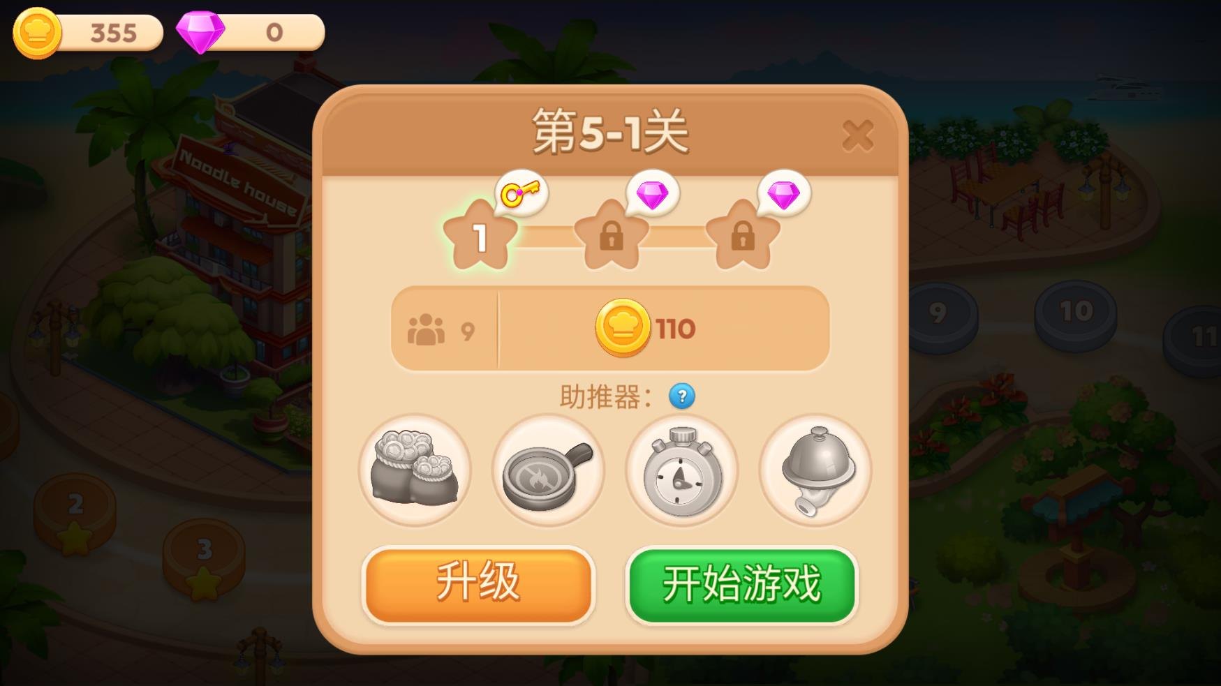 6. 不断闯关来收集更多的钥匙,使用钥匙解锁更多的餐厅来体验不一样的经营乐趣。