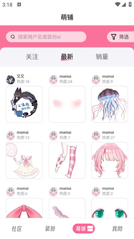 3. 进入“萌铺”,通过搜索栏或分类筛选找到心仪的装扮。点击“购买”后,使用虚拟币进行结算,即可将装扮添加到你的衣橱中。