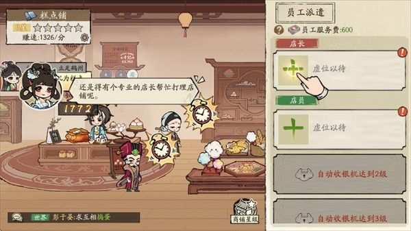 初期可能会面临人手不足的情况,你可以招募店小二等员工来帮助你打理店铺,随着店铺扩展,合理安排员工和资源,将有效提高店铺的运作效率。