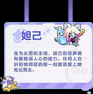 身为女团的主唱,妲己的歌声拥有着魅惑人心的能力。任何人在听到她唱歌的那一刻就会爱上她无论男女。