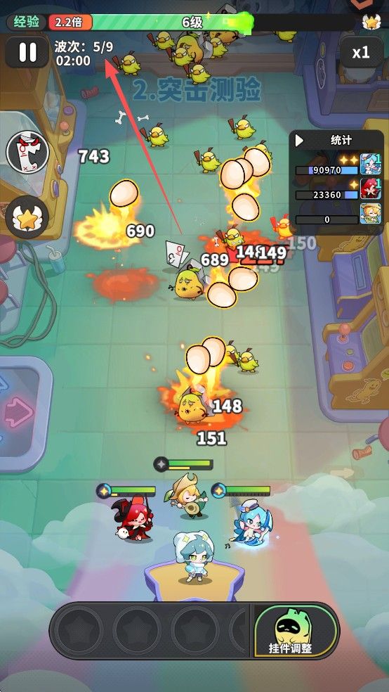 8、通过查看左上角的信息,可以了解对局的进度,在boss战到来之前尽快提升精灵的伤害。