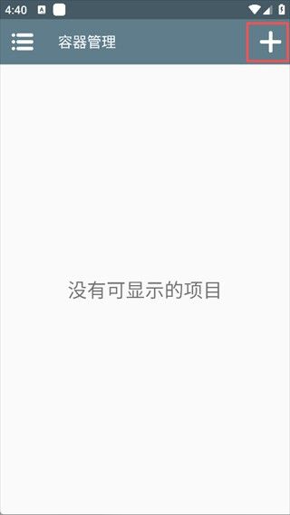 1. 打开攀爬动物在一起手机版,点击右上角+号创建容器。