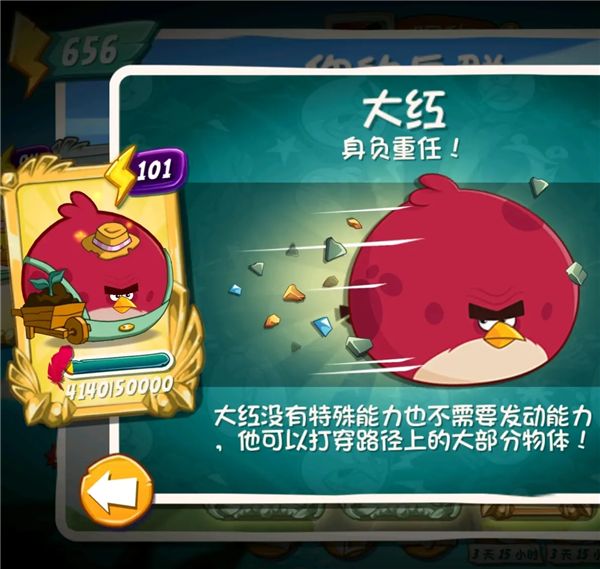 大红没有特殊能力也不需要发动能力,他可以打穿路径上的大部分物体。相当于变大变重的初始红鸟。
