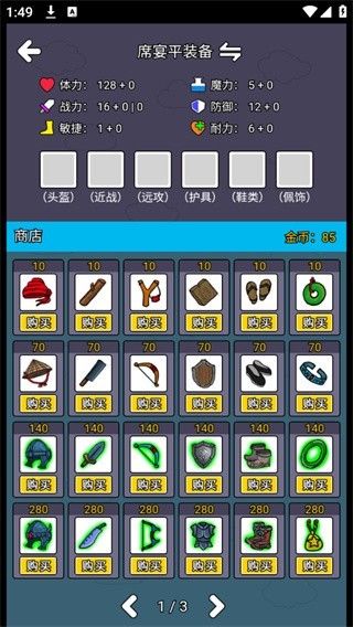 2. 接着金币收集到一定的程度后可以利用这一些金币来购买装备;