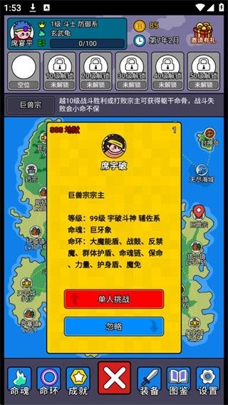 4. 最后等到角色的等级足够后打这个怪物,可以直接点击忽略按钮。
