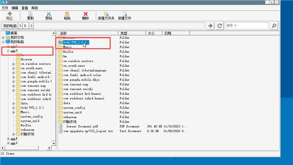4. 进入模拟器后找到D盘进入【Gods’PVZ_1.0.1】文件夹。