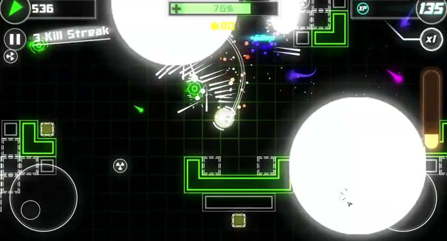 击杀敌人会为你的能量槽充能,待收集完毕之后,玩家便可使用特殊能力的强化装置,消灭更多的目标得分了。