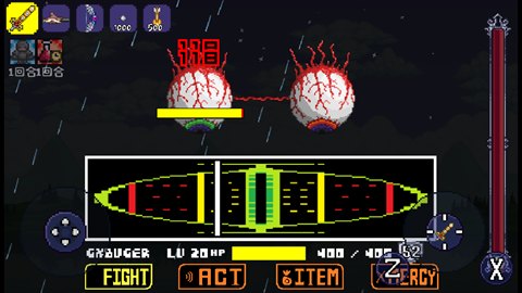 传说之下双子魔眼是一款根据泰拉瑞亚的boss来进行改编的趣味游戏,许多经典的技能和攻击的方式都可以解锁和尝试,操控着你的角色来和不同的强大敌人去展开战斗和对决,整体的体验感都很不错和经典,独特的技能也可以使用,获取许多的惊喜玩法,游戏中的存档点都可以轻松记录和使用,采用了回合制的战斗。
