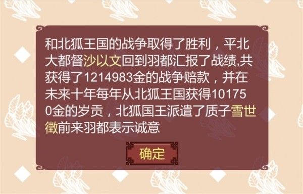 随机发生,降低两个王朝的亲善度,获得1w金不等