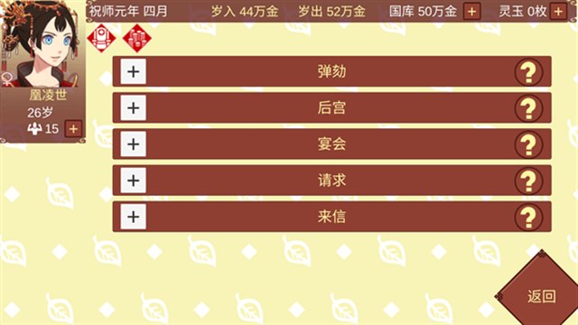 政略不够哪怕廉洁100%国库也不会涨很多,日子过得紧巴巴会让你扩不了出征的军队,修不了恢复体力的栖梧宫,尤其是需要大量钱财才能开启的j外探索。