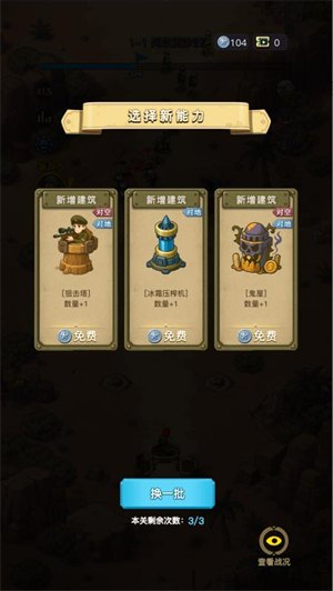 3. 经验满后可以升级,升级能选择一个炮塔来进行建造,或者是一项强化能力