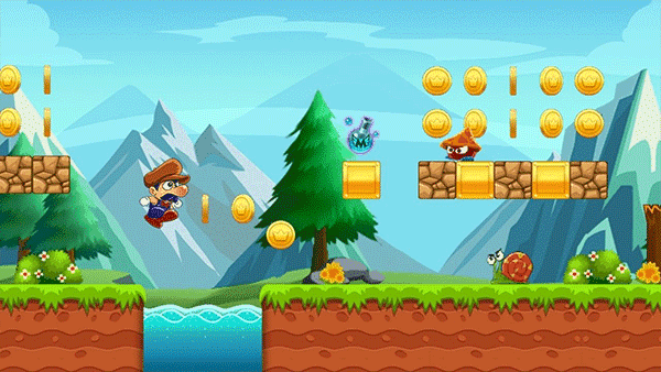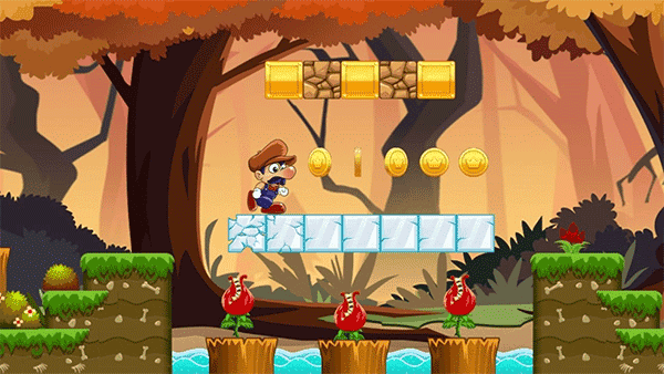 5. 遇到金色砖块可以跳跃顶一下,会有金币出现,幸运的话还会获得神奇饮料,图示为”长大”饮料,可以让角色充满力量,变大一倍!