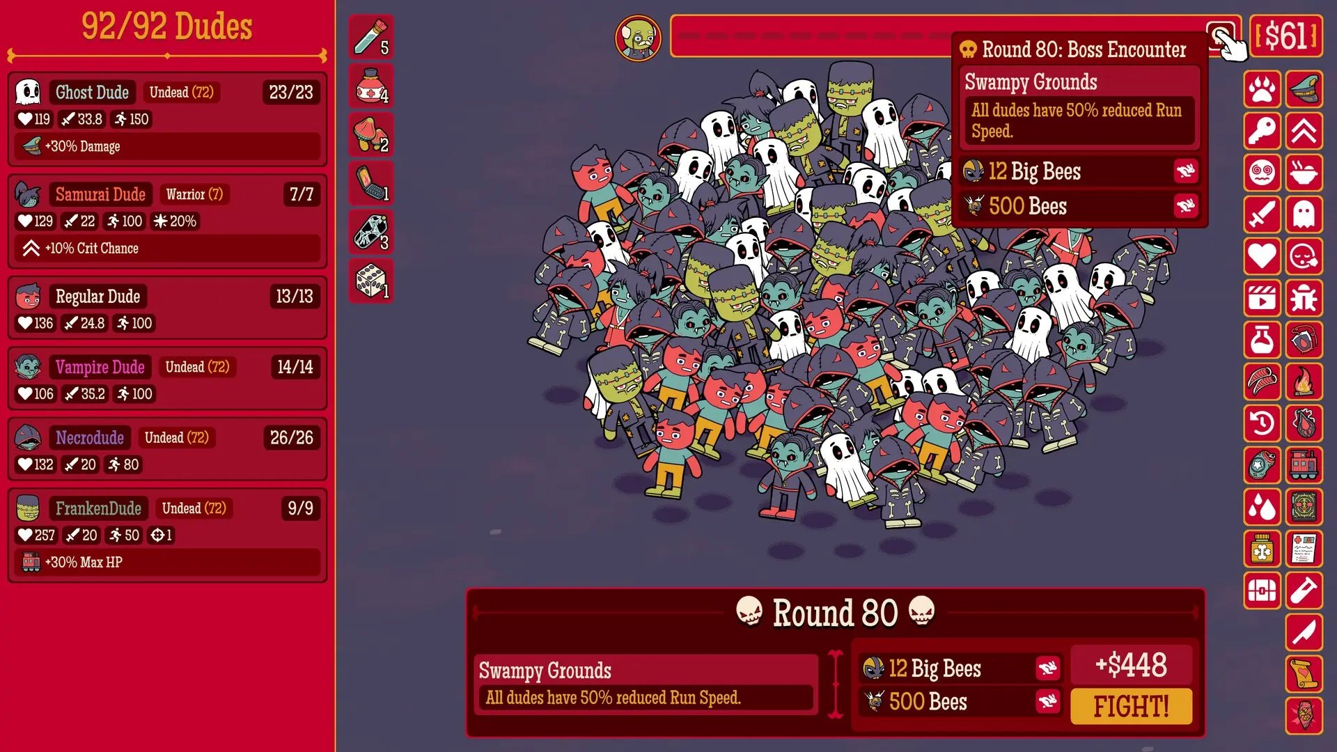 多少兄弟是由Butterscotch Shenanigans打造的一款肉鸽自走棋策略游戏,将策略与搞笑完美结合,玩家将在 “兄弟牧场” 招募并指挥一支由各种特色兄弟组成的军团,征战充满荒诞挑战的战场,挑选不同的兄弟作战,兄弟越多,战斗力越强,组建强大的强大的兄弟阵容击败各种强敌。