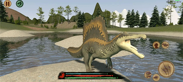 1. 首先需要操作左下角的摇杆控制恐龙走到水中;