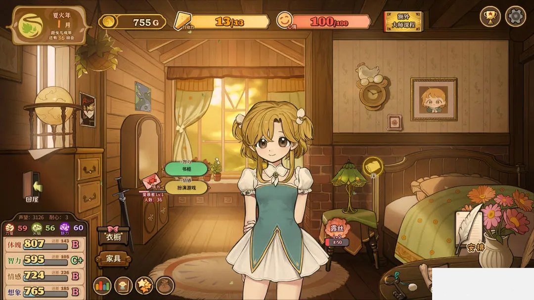 成为骑士?学者?大明星?安排女儿的课程学习和业余生活,挑战种植、烹饪、钓鱼、骰子对决……