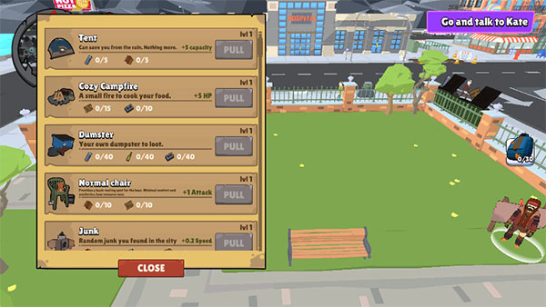 5. 但是建造需要各种材料,玩家需要前往各个垃圾桶去收集需要的材料