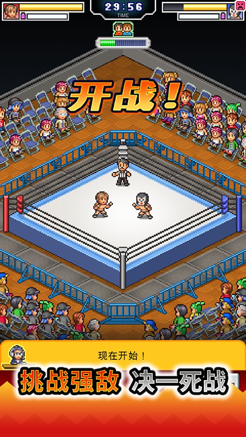 摔跤擂台物语中文版是由开罗游戏打造模拟经营游戏,也是经典像素经营系列的一种,在本款游戏中玩家将化身为摔跤馆的老板,需要通过培养摔跤手、建设擂台等方式来进行经营,努力将摔跤馆发展成为最强俱乐部!游戏玩法自由且丰富,玩家可以根据不同的情况来合理调整自己的经营方法,还可以针对不同角色特性定制专属训练方案,以提升其战斗能力,从而赢得更多比赛!