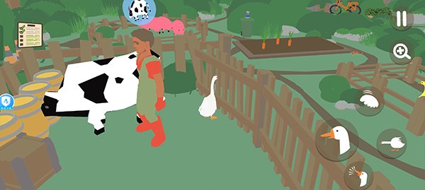 1. 将鹅移动到牛棚的门旁边用嘴推开门,等牛跑出去;