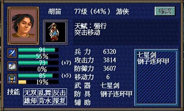 2. 伊籍:智力84. 统率72,防御力高,适合作为步兵车携带。