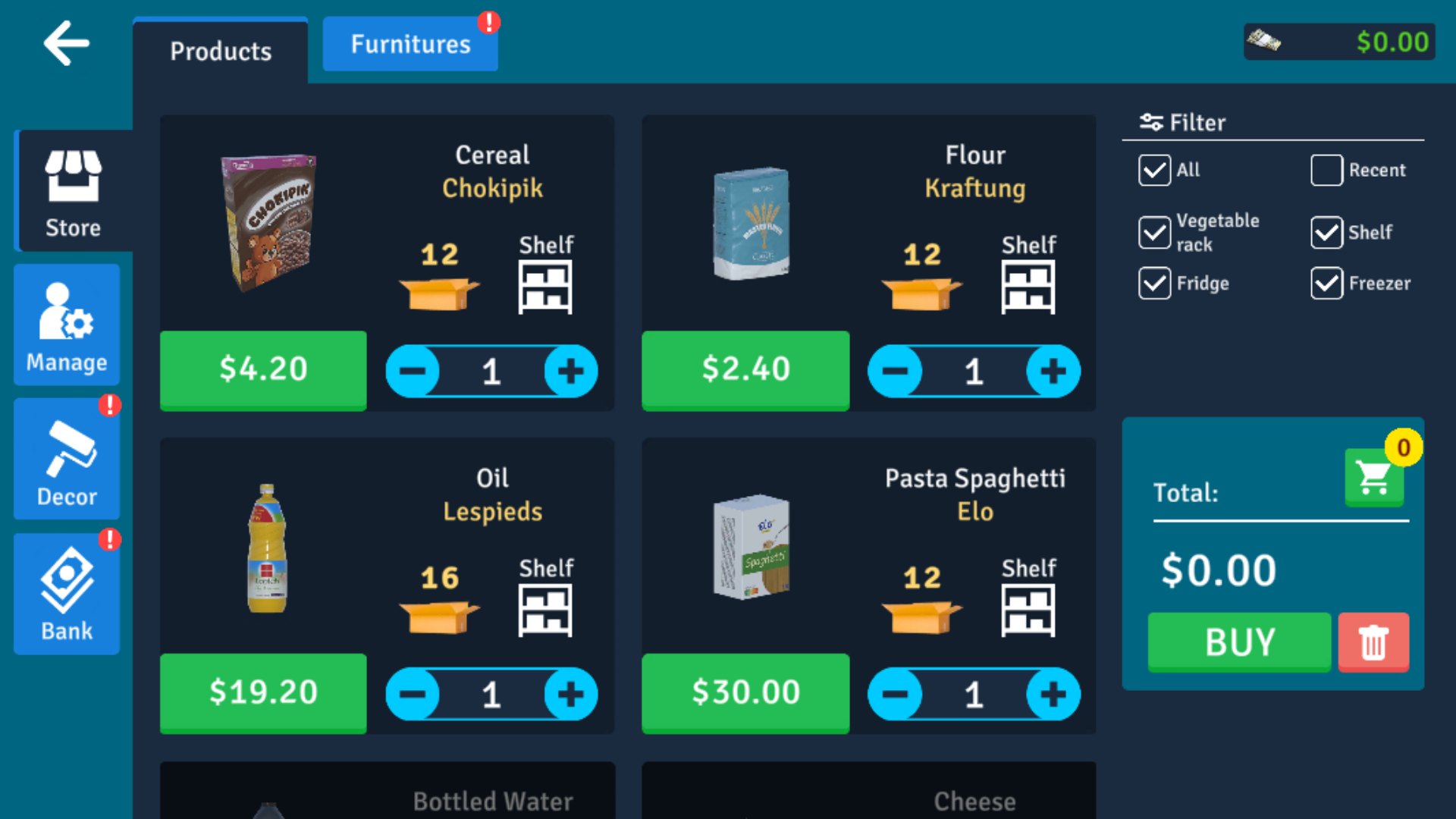 4. 采购管理:玩家需要根据超市的销售数据和顾客需求,合理安排商品的采购量和进货渠道,确保货架上始终有充足的商品供应。