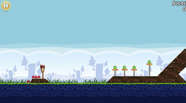 将这种愤怒的小鸟发射出去之后,让它们飞到猪堡的对面,此时轻触屏幕,你会看到小鸟儿又往回飞,并端端正正的打在猪堡的薄弱部位!