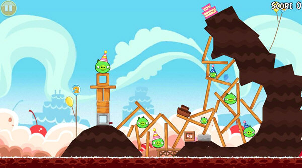 最后目标——砸到绿色的猪头,将猪头全部砸到就能过关;