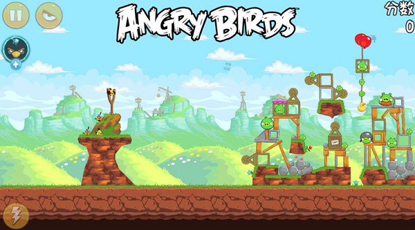 1. 首先关于愤怒的小鸟游戏的玩法比较简单,把弹弓上的小鸟弹射出去,