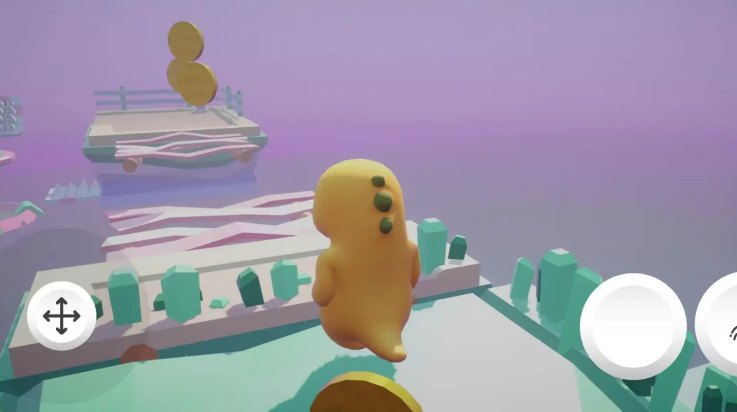 2. 右边一共有2个按键,左侧的按键能够让奶龙做出动作,右侧则是跳跃按键。
